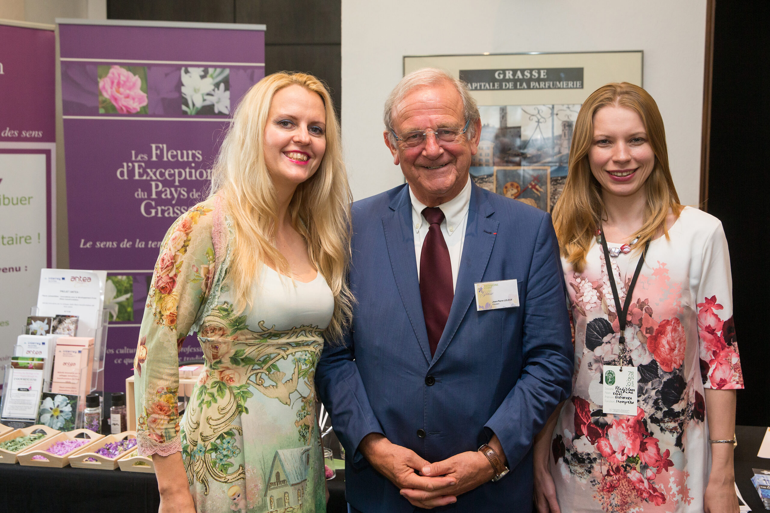- Владислава Кочелаева, Элеонора Ларина Кааби с Сенатором Жаном-Пьером Лёле во время конгресса нишевой парфюмерии в Грасе